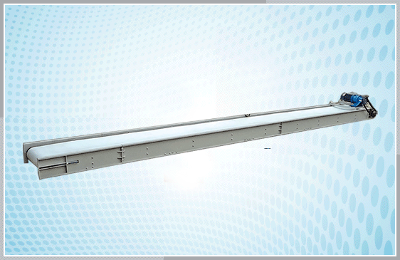 平板输送机结构:由机架、驱动装置、传动装置、输送带、上下托辊等部件组成。
